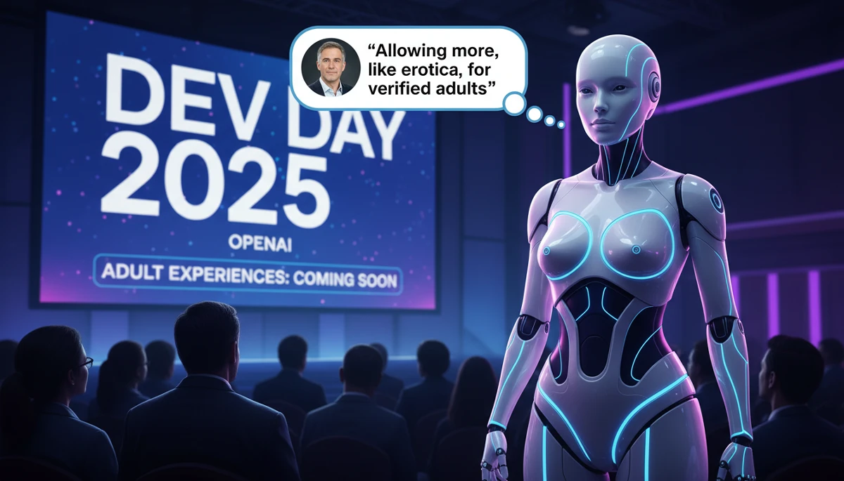 오픈AI는 최근 데브데이 2025(DevDay 2025) 컨퍼런스에서 “성인(18세 이상) 경험에 대한 지원은 적절한 연령 확인 및 통제가 마련되는 대로 제공될 것”이라고 밝혔습니다. 이어서 샘 올트먼은 자신의 소셜 미디어 계정을 통해 “성인 사용자를 성인으로 대우하는 원칙의 일환으로, 인증된 성인을 위한 에로티카와 같은 더 많은 것을 허용할 것”이라고 직접 확인했습니다. 이는 챗GPT(ChatGPT) 개발사가 성인용 콘텐츠, 즉 ‘섹스봇’ 방향으로 나아가겠다는 분명한 신호로 해석됩니다.